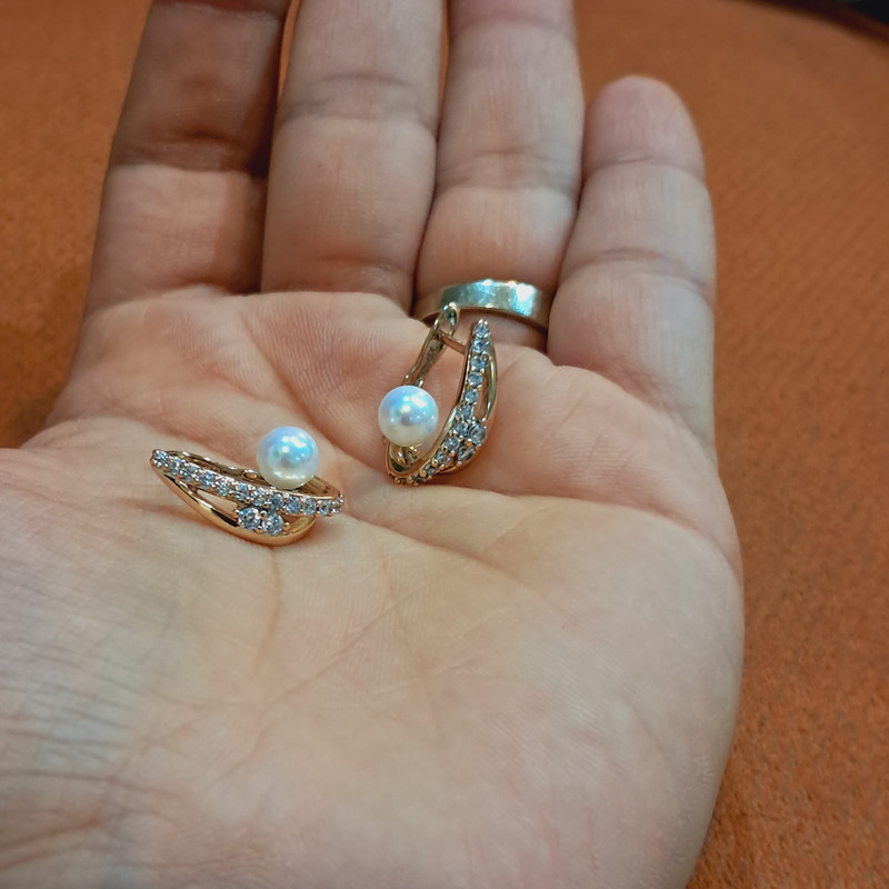 گوشواره حلقه ای زنانه ژوپینگ مدل نگین و مروارید مجلسی