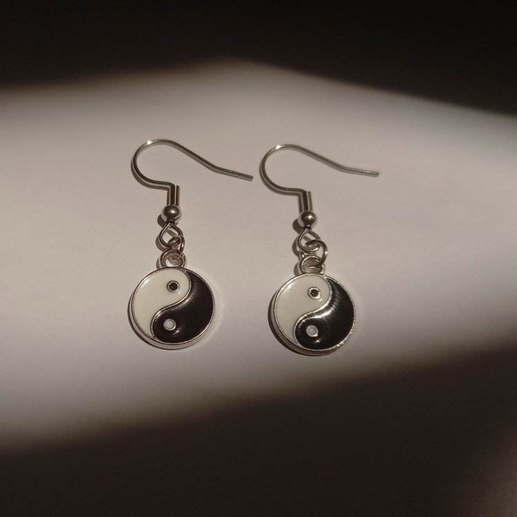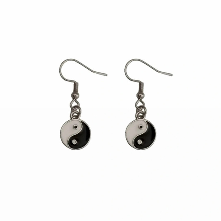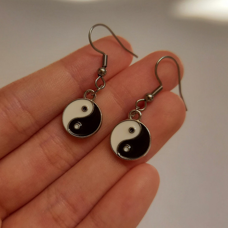 گوشواره زنانه مینیمال با طرح کارما که یک گوشواره زیبا و خاص برای زنان و دختران است، دارای پلاک با قطر 1/1 سانتی متر و حلقهی گوشواره استیل نقره ای رنگ ثابت است.