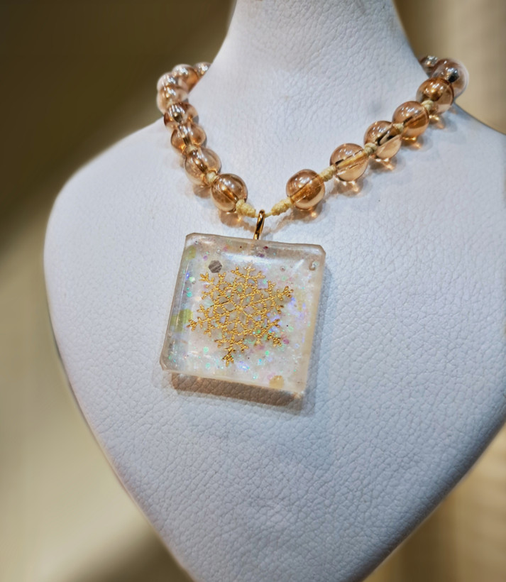 گردنبند دست ساز زنانه مدل برف مروارید کریستالی