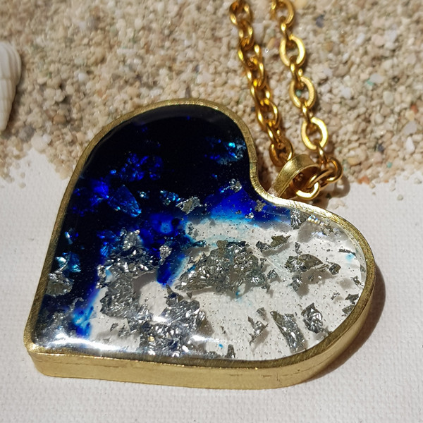 گردنبند از جنس رزین اپوکسی می باشد. داخل آن از رنگ سرمه ای و ورقه نقره استفاده شده. زیورآلات رزینی جلوه ای متفاوت و زیباتر به شما میدهد که مناسب تمام سنین می باشد. این گردنبند هدیه ای مناسب و بسیار زیبا برای دوستان شماست.