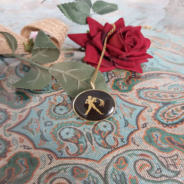 گردنبند رزینی ماه تولد ( ورق طلا ) , زمینه مشکی صدفی , فریم دایره جنس برنج رنگ ثابت , زنجیر استیل طلایی رنگ ثابت اندازه 60 سانت , قفل طوطی , اتصالات و قفل هم رنگ ثابت می باشند. (همراه با جعبه می باشد).اندازه دایره 3 سانت می باشد.
