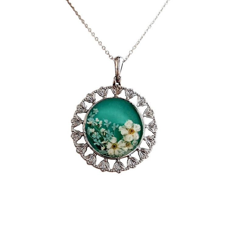 گردنبند شوکران، تلفیقی از طبیعت، هنر و اصالت ایران می باشد که بدست هنرمندان زبردست و خلاق ساخته شده است. متریال آن شامل رزین شاین آلمانی و گلهای طبیعی می باشد. این اثر هنری، می تواند جلوه خاص و زیبایی به استایل شما داده یا بهترین هدیه به عزیزان شما باشد.