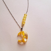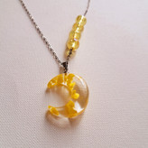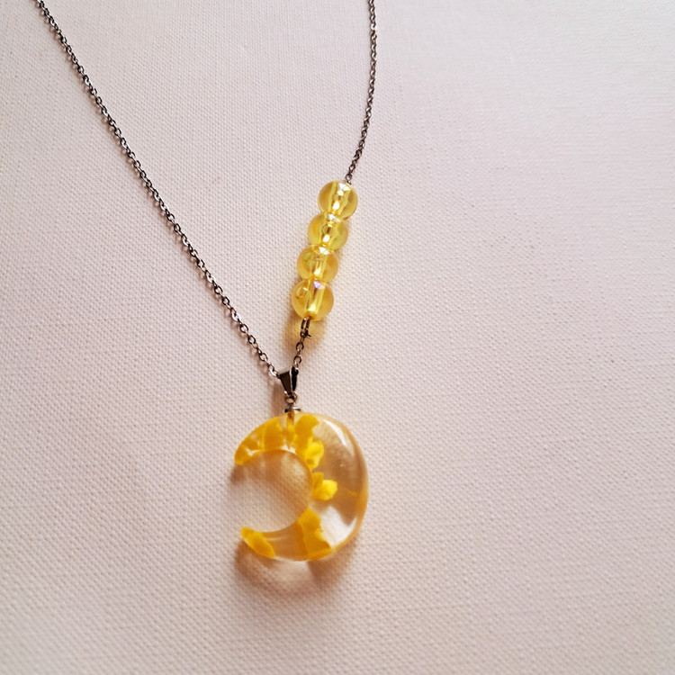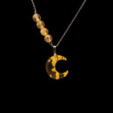 ماه شبتاب، با نور خورشید یا نور موبایل، نور را جذب میکند و در تاریکی، نوری که جذب کرده بود را، پخش میکند. به عبارتی، با نور شارژ می شود و در تاریکی، از خود نور پخش می کند. همچنین مروارید بکار رفته در این گردنبند، هولوگرامی است. رنگ آن در زوایای مختلف، تغییر می کند و بعبارتی "هفت رنگ" می شود.