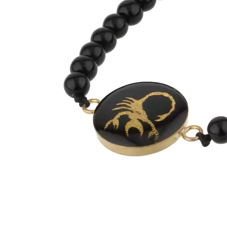 دستبند سنگ آبان با طرح سمبل ماه آبان یعنی عقرب و با استفاده از ورق طلا و سنگ اونیکس ساخته شده است.قاب پلاک این دستبند از جنس استیل ضد زنگ و ضد حساسیت می باشد که دارای رنگ ثابت است.نوع بستن این دستبند به صورت گره ای بوده و مچ دستتان هر اندازه ای که باشد، می توانید به سادگی این دستبند را روی دستتان فیکس کنید. درصورت انتخاب سنگ سفید، دستبند شما با سنگ اونیکس سفید و پلاک استیل صدفی ساخته خواهد شد