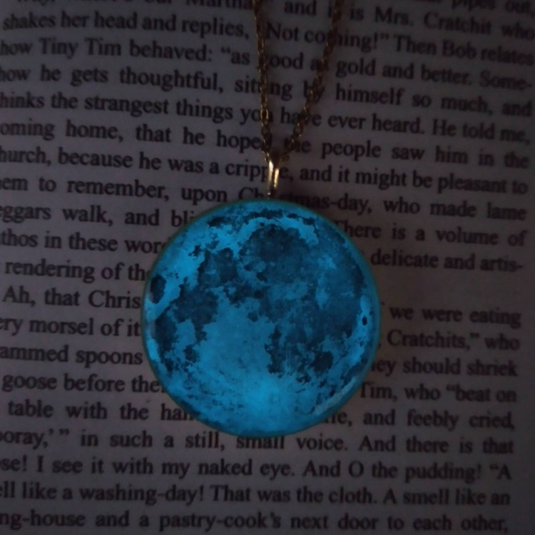 گرنبند رزینی ماه شبتاب طرح ماه کامل استبرای نوردهی بیشتر 20الی 30 ثانیه گردنبند مقابل چراغ یا نور خورشید قرار دهید. فریم استفاده شده در این گردنبندطلایی و قطر آن3 می باشد رنگ شبتاب فیروزه ای می باشد