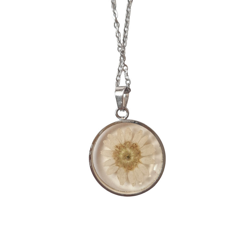 گردنبند دست ساز زنانه مدل گل بابونه طبیعی رزینی