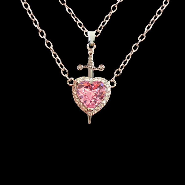 گردنبند دخترانه مدل قلب و شمشیر مجموعه دو عددی