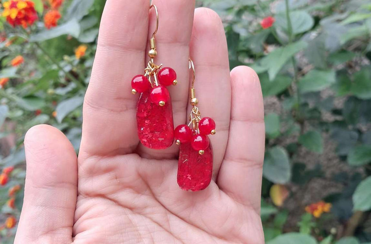 این گوشواره از رزین،پولک و رنگ ساخته شده است . این گردنبند جز جدید ترین کالکشن های مجموعه آرت سیتی گالری می باشد.