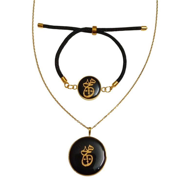 نیم ست زیبای هیچ شامل یک عدد گردنبند و دستبند رزینی است. این نیم ست دارای رکاب های درخشان طلایی از جنس برنج و زنجیری رنگ ثابت می باشد و دستبند آن دارای بندی با قابلیت تنظیم سایز است.