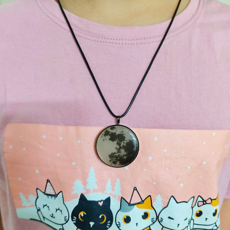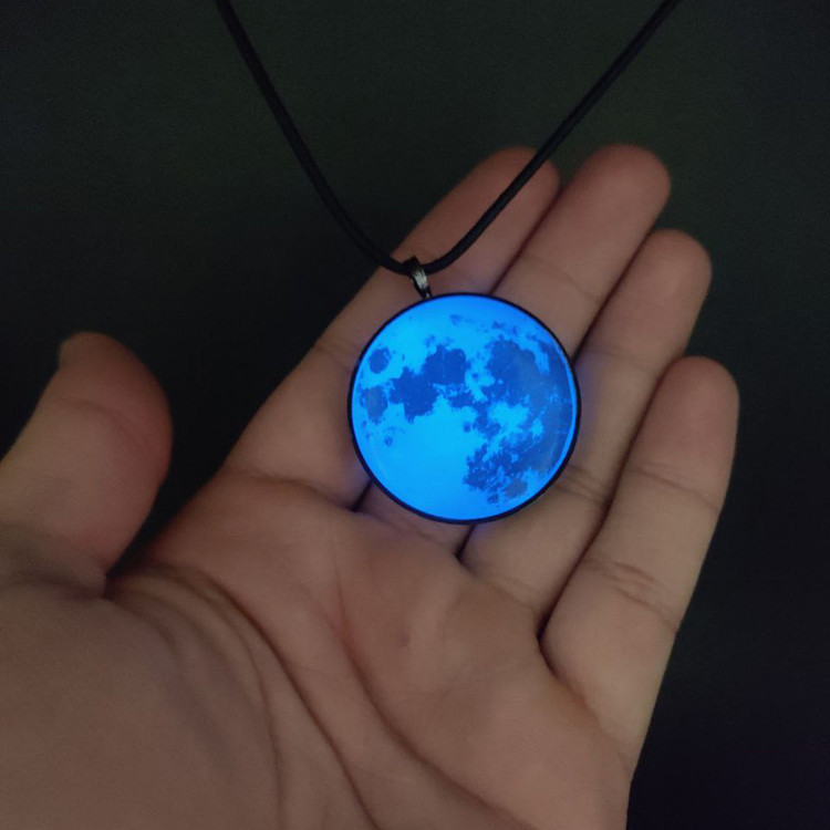 گردنبند ماه شبتاب ساخته شده ما رزین کره ای قابلیت روشنایی در تاریکی مطلق رو دارد،و با جذب نور در روز،در تاریکی مطلق شب روشنایی خیره کننده ای دارد.فریم گردنبند رنگ ثابت هستش با بند چرمی.فوق العاده با کیفیت و با دوام است.