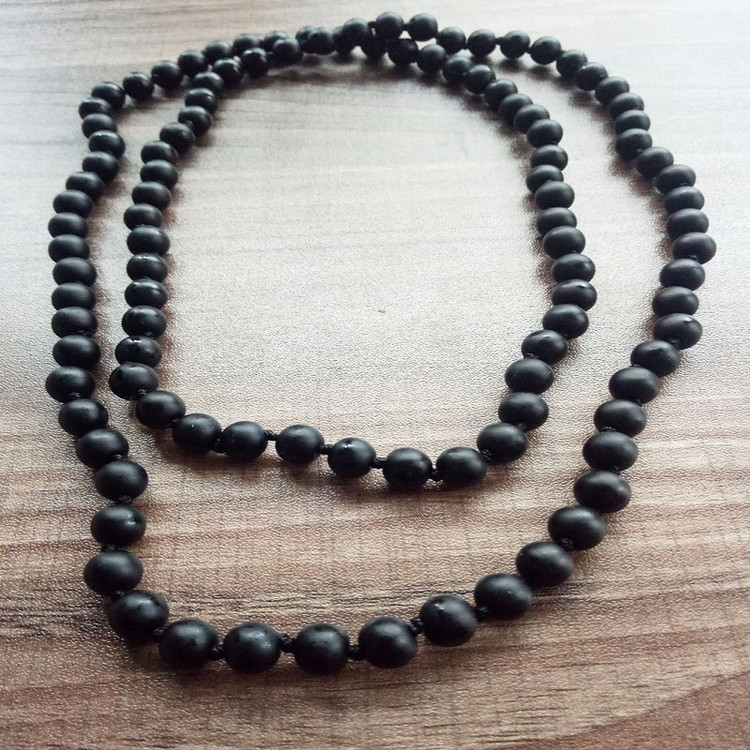 گردنبند انیکس از سنگ معدنی انیکس ساخته شده .سنگ اونیکس، این جواهر شاداب و سالم نام خود را از کلمه یونانی پنجه یا انگشت به دلیل شکل و سفید درخشان نوارهایی که در داخل جواهر ظاهر میشود، گرفته است. در واقع، این سنگ تیره و رؤیایی موردعلاقه الههها و ملکهها است و حتی کلئوپاترا بر این اعتقاد بود که سنگ اونیکس را نزدیک خود نگه میداشت؛ زیرا این سنگ بهخاطر قدرت محافظتی قوی خود شناخته میشد. وقتی صحبت از سنگ اونیکس به میان میآید، عجایبی حیرتانگیز را میشناسیم. این سنگ یک نوع محافظ میباشد. بله محافظ! اما این سنگ به طرق دیگر نیز به ما خدمت میکند. سنگ اونیکس مانند سایر سنگهای سیاه و زیبا، میتواند انرژی منفی را جذب کند و به ما کمک کند تا به توصیههای عاقلانه خود عمل کنیم.