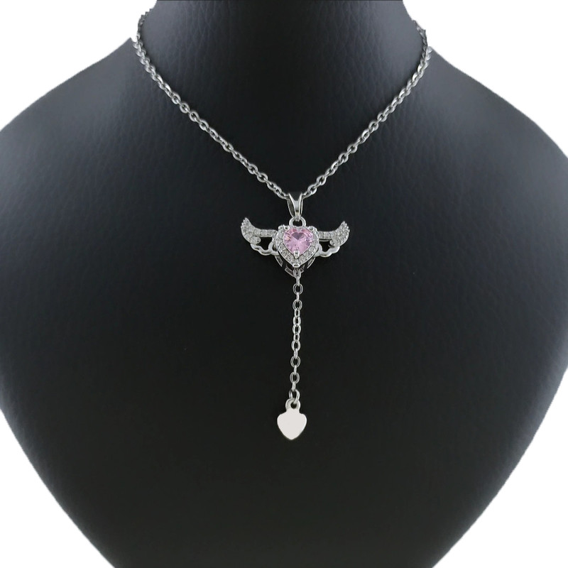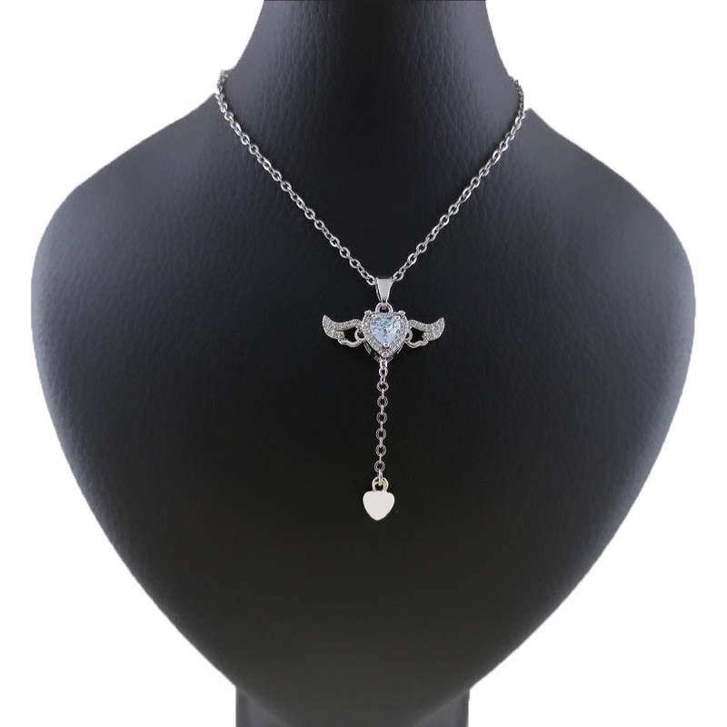 گردنبند دخترانه مدل قلب بالدار قلب فرشته با بال متحرک بسته 2 عددی