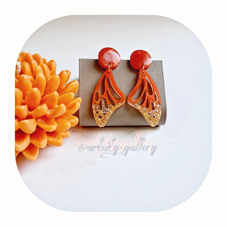 گوشواره دست ساز زنانه رنگ نارنجی مدل پروانه ای