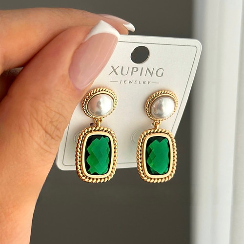 گوشواره زنانه ژوپینگ مدل مروارید و زمردی فریم دار